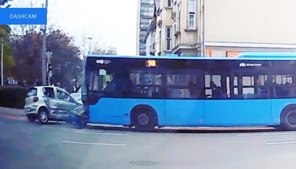 „Az előttem haladó személyautó vezetője figyelmetlenül át akart haladni a kereszteződésen de jött a BUSZ” – írta portálnak az olvasó. A felvételen jól látni, hogy a jelzőlámpa nem működött, sárgán villogott. A kis Toyota Yaris sofőrje balra szeretett volna kanyarodni, de a jobbról érkező buszt vélhetőleg nem vette észre és elékanyarodott.