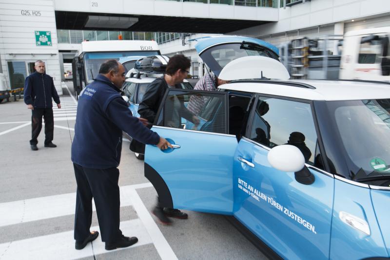 A MINI promóciós munkatársai a kettes terminál kiválasztott beszállókapuinál kérdezték meg a Lufthansa utasait, hogy szeretnének-e az autóbusz helyett az új 5-ajtós MINI-vel a repülőgéphez eljutni. A MINI Shuttle szolgáltatást igénybe vevő utasok kezdhetik meg elsőként a beszállást. Az Electric Blue színben pompázó MINI-k közvetlenül a beszállókapunál várják az utasokat, hogy egyből a kifutópályához vigyék őket.