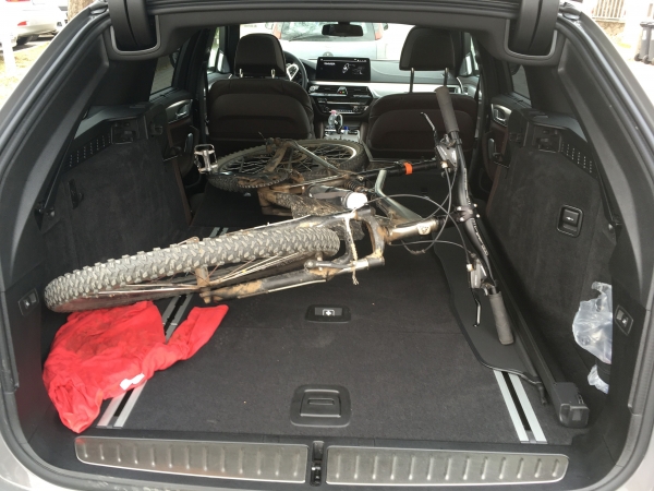 4963 milliméter hosszú, 1868 milliméter széles és 1498 milliméter magas a BMW 530d xDrive Touring, tengelytávja szintén tekintélyes: 2975 milliméter. Ebbe az autóba hátulra is kényelmes beszállni, akár sofőrös kombinak is jó. A csomagtartó bőséges, alapból 560 literes (azért ne szaladjunk el ama tény mellett, hogy az elődje 570 liternyi cuccot fogadott be...), a hokis táskám úgy befér széltében, hogy még egy bevásárlókosárnyi cuccnak is marad hely. Ha pedig síkban lehajtjuk a hátsó üléseket, az 1700 literes puttony simán benyel egy biciklit úgy, hogy nem kell origamizni az első kerékkel, a kormánnyal vagy az üléssel. Egyszerűen benyeli.