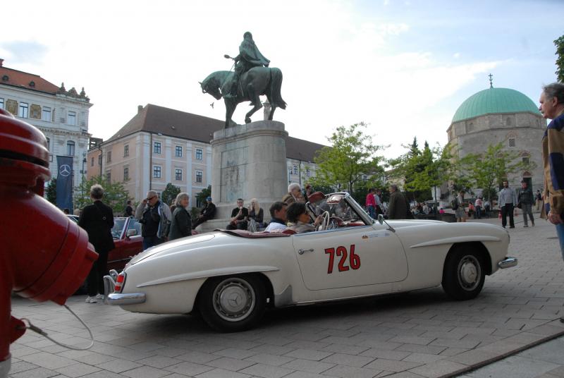 Csodás járműpark sorakozott az első májusi hétvégén a budapesti Hősök terénél, a Műcsarnok mellett: hetven makulátlanul tiszta és tökéletes állapotú old timer várta az indulást. A mezőny legöregebbje az 1938-as W136 170V Cabrio Limousine volt. Aztán az 1953-as W191-es jelzésű 170D. majd a 180D, vagyis egy ponton következett. Ezek után jöttek az igazi sportkocsik, például a Gullwing, vagyis a Sirályszárnyasként ismert 1956-os W198 300SL, melyet 2000-ben az Évszázad sportkocsijának választottak, jogosan. A Sirályszárnyas után jöttek a hatvanas évek sztárjai, a 190 SL Roadsterek. És persze a fecskefarkúak, a kockafenekűek, e fekvőlámpások és a Dallas sorozatból ismert 450-esek, valamint az ugyancsak USA piacra szánt 560SL változatok. Igazi kuriózum volt az 1980-as GE terepjáró, mely aszfalton is jól teljesítette a szűkre helyek feladatait.