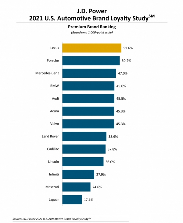 Ilyen környezetben különösen kritikus, hogy a vásárlás mellett döntő ügyfelek hűségesek maradnak-e eredeti márkájukhoz, vagy bármilyen okból más gyártótól választanak új autót. A J.D. Power felmérése azonban nem mutatott változást az élen, sőt: a Lexus, amely a két évvel ezelőtt útjára indított autóipari márkahűség felmérésen (Automotive Brand Loyalty Study) eddig minden alkalommal győzni tudott, a válságban minden eddiginél hűségesebb ügyfélkörre támaszkodhatott. Míg 2019-ben ügyfeleinek 47,6 százaléka maradt a márkánál, az arány 2020-ban már 48,0% volt, idén pedig 51,6 százalékra emelkedett.