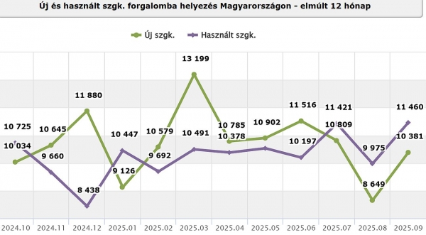 Ha a tendenciát vizsgáljuk, látható, milyen lendületben van a használt személykocsik behozatala: tavaly még csak 82 138, azelőtt pedig 79 987 autó kapott magyar rendszámot szeptember végéig.