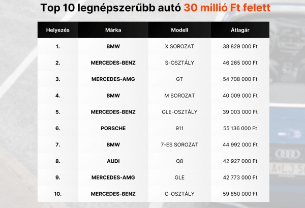 „Ráadásul nemcsak luxusszedánokat vagy luxus SUV-okat láthatunk a listán, hanem ezen márkák sportautóit is, mint például a BMW M sorozatának tagjait, a Mercedes-AMG GT modelleket, vagy épp a már említett Porsche 911-et” – mondta Horváth András, a Használtautó.hu autópiaci szakértője.