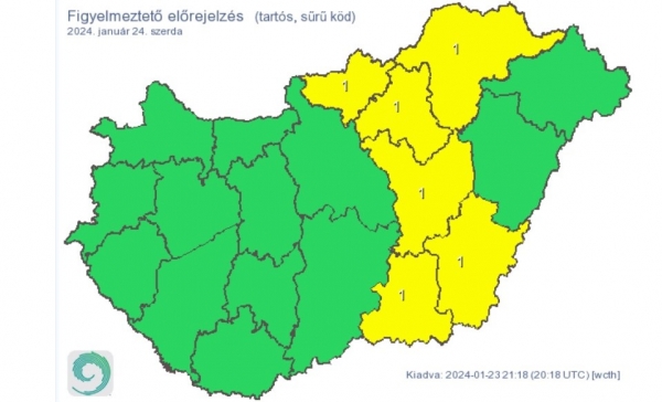 Főként az Északi-középhegység nyugati felén, illetve a magasabb térszínein a reggeli, délelőtti órákban előfordulhat kis mennyiségű, átmeneti ónos eső.