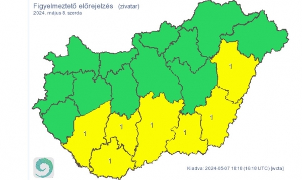 Az éjszaka második felében egy-egy helyen villámtevékenység még nem zárható ki. Szerdán napközben leginkább az ország délnyugati, déli, keleti részén, a határhoz közeli területeken alakulhat ki helyenként zivatar. Zivatar vagy intenzív zápor környezetében délutánig lokálisan felhőszakadásszerű (~15-25 mm) csapadék előfordulhat.