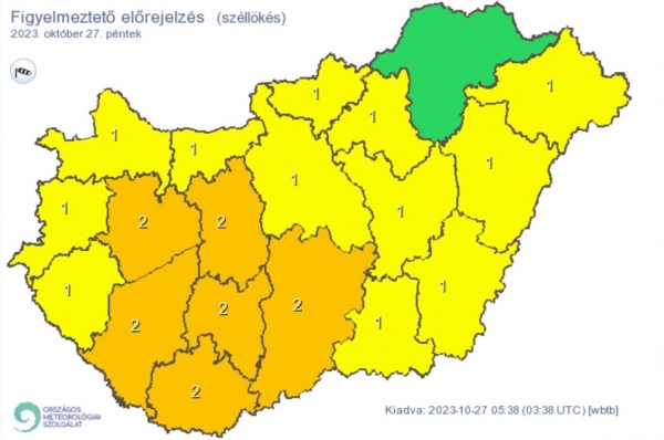 Főként az ország déli részében 80-90 km/h-t meghaladó lökések is előfordulhatnak. A hidegfront mentén zivatarok is várhatóak, amelyekhez a déli országrészben 90-110 km/h-s lökések is társulhatnak, de egy-egy intenzívebb gócban 110 km/h feletti lökés sem kizárt.