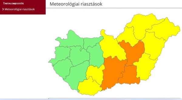 Az MTI-hez eljuttatott veszélyjelzés szerint a riasztással érintett járásokban a következő órákban a várt legerősebb széllökések meghaladják az óránkénti 90 kilométeres sebességet, a hevesebb zivatarok környezetében pedig a villámlások mellett kockázatot jelent a zivatarokat kísérő szél és jégeső is.