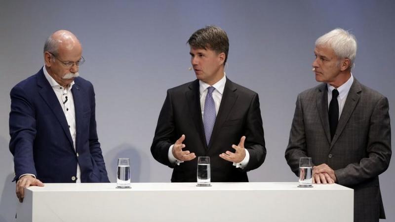 A Daimler-főnök Zetsche, a BMW-t vezető Krüger és a VW vezetője Müller. Külön-külön is sokat érnek. Fotó: automobilwoche.de