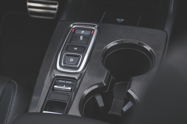 No, igen az utastér. Beülve azonnal érezzük, hogy itt valami sokkal komolyabbal van dolgunk, mint eddig. Letisztult, ízléses, komoly a kabin. Legmeghatározóbb eleme a műszerfalon végigfutó fém méhsejt minta, amik mögött a légbeömlők is megbújnak. Minden precízen, fémesen kattan. Ez egy nagyon minőségi, komolyan vehető utastér, aminek többnyire sikerült levetkőznie az ügyetlen japános beidegződéseket. Váltókar itt már nem rondít az összképbe: gombokról tudjuk diktálni az irányt a fokozatmentes váltónak, így a kormány mögötti fülekről sem váltunk, hanem a visszatermelés mértékét tudjuk növelni – bár ezt nem sokáig jegyzi meg, és visszaáll alapállásba.
