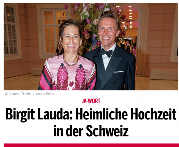 Birgit Lauda (46), az egykori sokszoros Forma1-es világbajnok özvegye és régóta együtt élő partnere, Marcus Sieberer összeházasodtak.