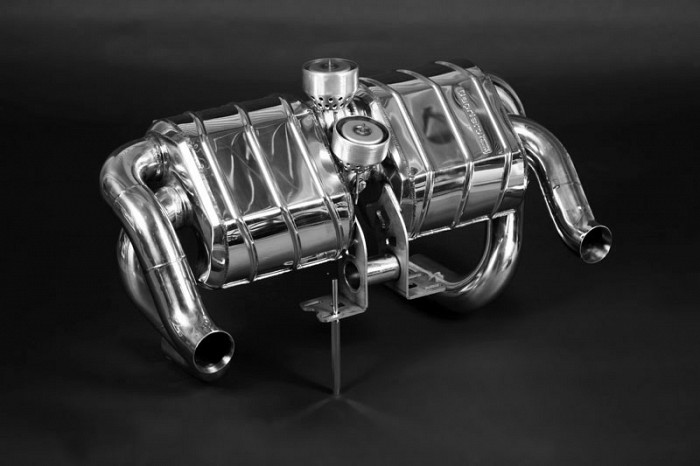 A teljesen újjátervezett kipufogórendszer is kettős, két részből áll: egy úgymond normálisból (amely megfelel a zajra vonatkozó előírásoknak) és egy sportos, szívet, lelket, mellkast megremegtetőből. A kettő nem párhuzamos, vagy az egyik vagy a másik, hanem kapcsolt. A sportos csatlakozik a „normálishoz”. A csatlakozást, átjárást egy vagy több térelválasztó vagy gázátjárást biztosító szelepből, terelő lemezből, nyitható zárható ajtóból áll. A rendszer német neve Klappenauspuffanlage.