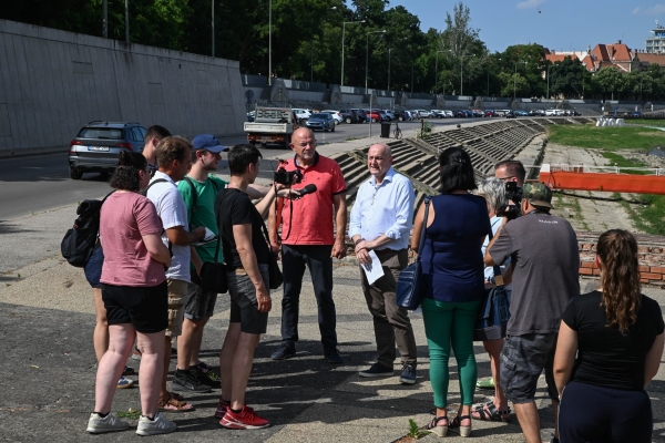 A Dunát, a Marost, a Tiszát és a Körösöket elsőként feltérképező vízépítő mérnök, geodéta, Huszár Mátyás nevét viselő rakparton a munkálatok idén a tervek szerint augusztus 19-ig tartanak.