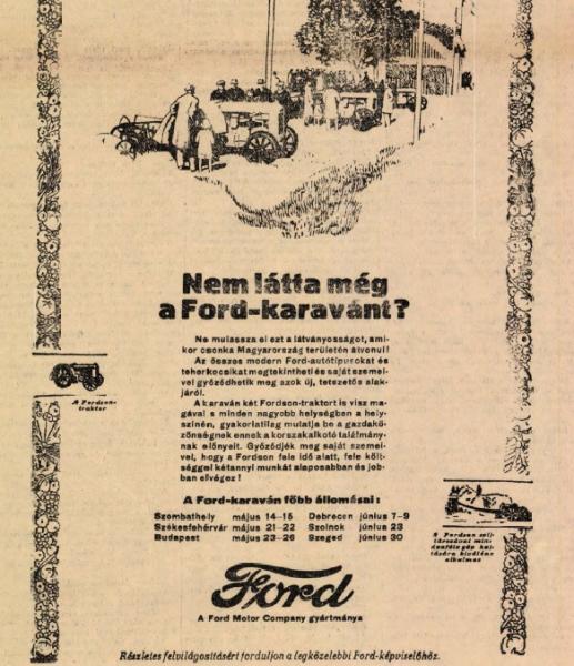 Közhelyszerűen hangzik, hogy 90 évvel ezelőtt se tévé, se internet nem volt. A Ford, amely szerette volna, ha az emberek megismerik a Fordson traktor sokoldalúságát és szántási képességeit. Ennek egyetlen módja az volt, ha a gazdákhoz odaviszik a traktort. Elsősorban ezt a célt szolgálta a Ford-karaván, amelyben számos Ford Model T mellett két Fordson és 2 db reklám teherautó is helyet kapott.