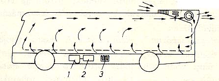 A szellõztetés fõ célja a levegõcsere, aminek az indokoltságát alátámasztja, hogy egy-egy utasra néha még fél köbméternyi légtér sem jut. Ilyen körülmények között a levegõ gyorsan elhasználódik, megtelik párával. A szellõztetést nyári viszonyokra kell méretezni. A levegõ bevezetésére szolgáló nyílást a kocsitesten ott kell elhelyezni, ahol menet közben torlónyomás van, a kivezetõ nyílást pedig a szívás helyén. Ahol légörvények keletkeznek (pl. a hátsó ablak mögött) semmilyen nyílást nem célszerû kialakítani, mert megzavarja a levegõnek a kocsitérben való átáramlását.