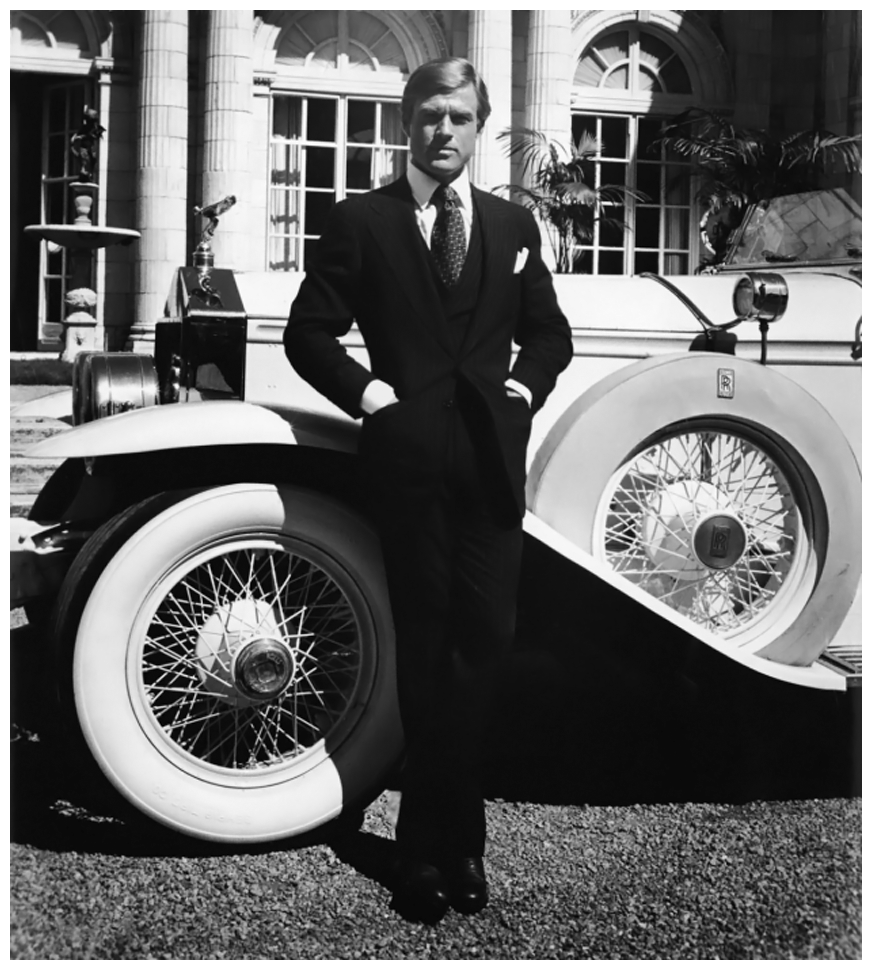 Robert Redford (R. R.) Gatsby szerepében, mögötte az 1928-as RR Phantom