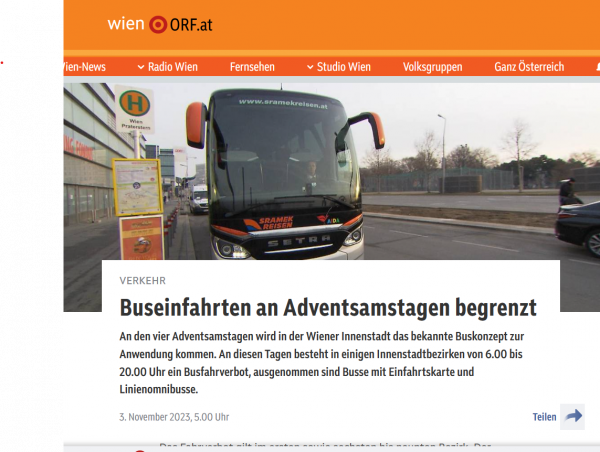 A korlátozás az első, a hatodik és a kilencedik kerületben lesz érvényben. Ennek az az oka, hogy az adventi bevásárlószombatokon több egynapos turista utazik busszal Bécsbe, hogy meglátogassa a karácsonyi vásárokat és sétáljon a bevásárlóutcákon. Ez a belvárosi forgalom jelentős növekedését is magával hozza.
