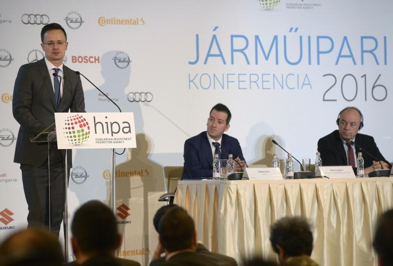 A külgazdasági- és külügyminiszter szerint 2015 rekordév volt. Soha nem volt még ilyen nagy a magyar járműipar exportja, a kivitel értéke 2015-ben 19,6 milliárd euró volt, amely csaknem 14 százalékkal, 2,4 milliárd euróval haladta meg az egy évvel korábbit. 2015-ben 7833,3 milliárd forint termelési értéket állított elő az autóipar Magyarországon, amely 17,6 százalékkal volt több, mint 2014-ban. A járműgyártásban dolgozók száma 13 százalékkal nőtt, meghaladta a 149 ezret. Beszélt arról is, hogy az exportból származó árbevétel 16 százalékkal, a belföldi értékesítésből származó bevétel 36 százalékkal nőtt, ezek eredményeként pedig a magyar autóipar részaránya a teljes feldolgozóiparban már több mint 30 százalék.