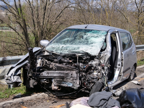 Összeroncsolódott személyautó Budapest XI. kerületében a Balatoni úton, ahol az autó egy autóbusszal ütközött össze 2024. március 25-én. A balesetben egy ember meghalt. MTI/Mihádák Zoltán