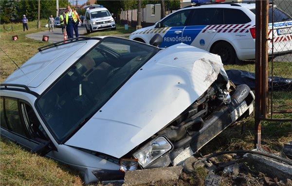 Árokba sodródott, összetört személyautó Kótaj belterületén 2018. szeptember 16-án. A sofőr egyedül utazott a járműben, a középkorú férfi a balesetben a helyszínen életét vesztette. MTI Fotó: Taipusz Attila