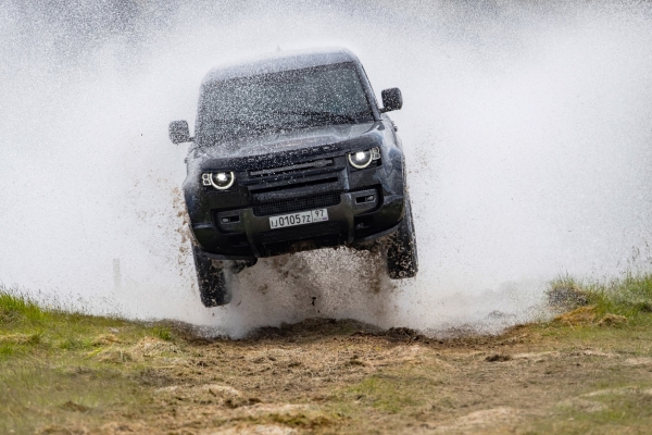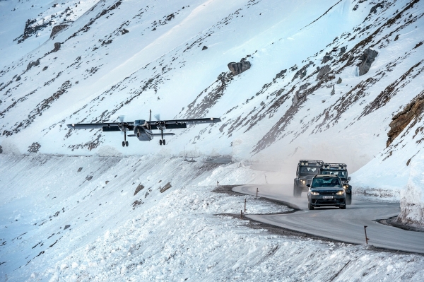 A No time to die (Nincs idő meghalni) forgatásán tíz új Defendert vetett be a gyártó, az egyik alvázszáma stílszerűen 007 volt. Mind jól bírta a különleges igénybevételt és a Land Rover cég állítja, hogy az üldözésjelenetben szereplő autók csak utascellába épített biztonsági bukókeretükben tértek el a szériaváltozatoktól. A legizgalmasabb ugrásokat alakító autót a 25 éves Jessica Hawkins vezette, a hölgy első kaszkadőrélménye a Honda szupergyors fűnyírójával felállított rekord volt.