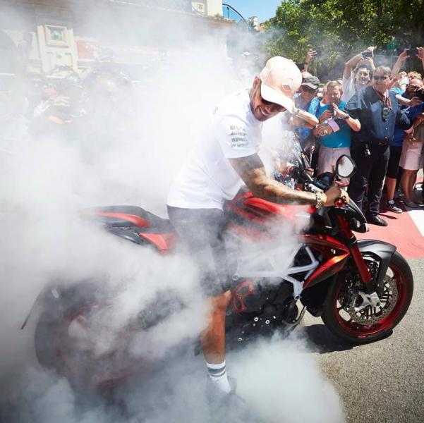 Lewis Hamilton továbbra sem kerüli a feltűnést: a hétvégi Monacói Nagydíj helyszínén motorkerékpárral közlekedik – nem is akárhogyan. Ezúttal egy MV Agustával jár, amelyet alighanem kifejzetten a számára készítettek, hiszen a rajtszáma és neve is feltűnik a fényezésen. Hamilton kisebb showt is előadott, rajongóit látványos gumiégetéssel szórakoztatta. A brit pilóta egyébként a harmadik helyről várja a vasárnapi versenyt.