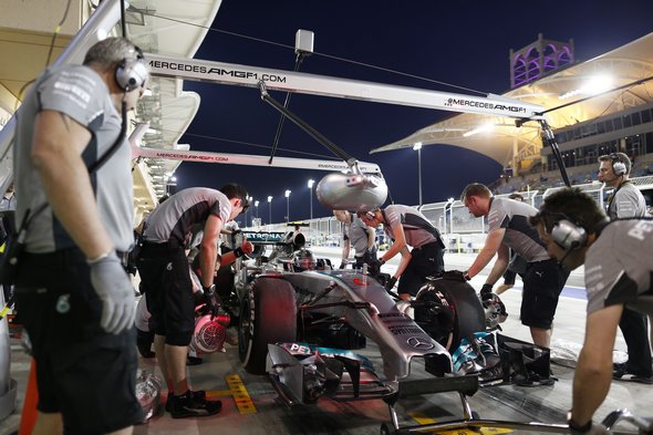 Eddig kétséget kizáróan a Bahreini Nagydíj az év versenye, mivel több előzést láthattunk a futamon, mint az első két versenyen együttvéve. Ahogy várható volt, a két Mercedes külön csatát vívott, a többiek csak a harmadik helyért küzdhettek. Nico Rosberg csak pár méteren át vezette a mezőnyt, mivel Lewis Hamilton a mások Mercedesszel jobban rajtolt, és már az első kanyarban az élre állt. A brit azonban nem tudott elhúzni csapattársától, 10 kör alatt csak 1,3 másodperc előnyt autózott ki előtte. Rosberg az első kerékcserék előtt már előzéssel is próbálkozott, egyszer egy pillanatra az élre is állt, de Hamilton végül mindig visszaverte a támadását. A második etapban a brit el tudott húzni 10 másodpercre tőle, mert eltérő gumi volt az autójukon (Rosberg a lassabb, közepes keveréket használta ekkor). A verseny utolsó 12 körében, egy Safety car periódus után azonban ismét csak méterek választották el őket, ekkor ráadásul Rosberg volt előnyben, mert ekkor az ő autóján volt a nagyobb sebességet engedő lágyabb gumi, ráadásul a DRS-t is használhatta. A német versenyző többször is próbálkozott az előzéssel a célegyenes végén, párszor majdnem összeérték az S-kanyarokban, egyszer leterelte őt Hamilton a pályáról, de még épp a sportszerűség határán innen voltak a manővereik. Végül az előzés nem jött össze számára, és alig egy másodperc hátrányban a második helyen futott be.