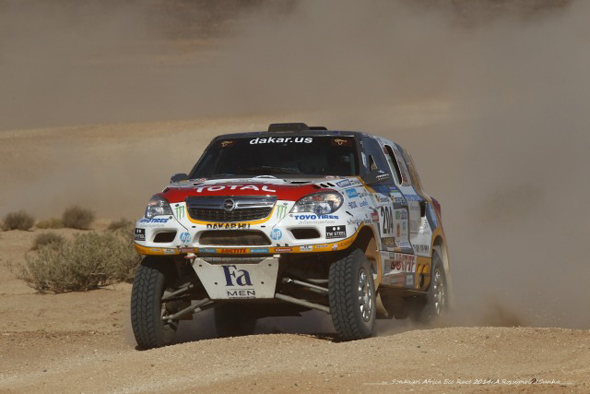– A szakasz első része nagyon jól sikerült, szinte mindenkit sikerült megelőzni, s az utolsó ellenőrző pontnál vezettünk is, amikor egy keskeny, lejtős úton, a kövek között odaütöttük az autót – mondta az Opel Dakar Team pilótája, Szalay Balázs. "Rögtön kaptunk is egy jobb hátsó defektet, s bár viszonylag rövid idő alatt lecseréltük a kereket, alig indultunk el, amikor észrevettük, hogy a bal hátsó is lyukas. És amíg azzal bíbelődtünk, hogy kicseréljük, többen is visszaelőztek.”