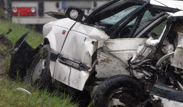 Migránsokat szállító Volkswagen balesete az M5-ös autópályán. Fotó: delmagyar.hu