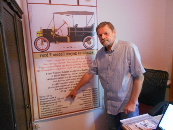 Nyáron meghívták a kiválóan szervezett XII. Mindszenti Veteránjármű Találkozóra, oda vitte először az összes tablóját kiállítani. A főszervező, Csatlós Lajos (Lui) érdekességképpen megkérte, hogy állítson össze egy kvízt az autókról. Feladatok és állomások voltak Mindszenten, körbejártak a versenyzők. – Én is egy megálló voltam a tablóimmal, a résztvevők egy általam összeállított 20 pontból álló kvíz kérdéssort töltöttek ki. A rajzokból merítettem, így a versenyzők nagy része kénytelen volt végigbogarászni azokat, volt, hogy két tucat ember is tolongott a tablóim előtt. Minden jól sikerült, több mint 200 kvízt töltöttek ki. Akik sok kérdés eltaláltak, azok képeslapot kaptak Ford T-modellről, amit akár postán is fel lehet adni. Volt egy kedves pár, akinek csak 6 sikerült a 20-ból. Meglepődtek, mert ők is kaptak képeslapot, mint abszolút negatív rekorderek. Ezen jót derültünk – emlékszik vissza nyári programra.