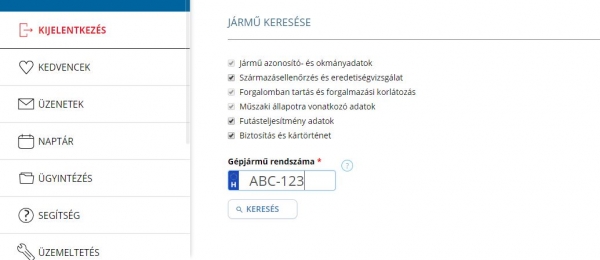 A tovább lépéshez kattintsunk az „Elektronikusan” mezőre, majd megadhatjuk, hogy az adott rendszámú gépjárműről milyen adatokat szeretnénk lekérdezni. Mivel minél több információra szükség van az alapos áttekintéshez, érdemes az összes lehetőséget bepipálni.