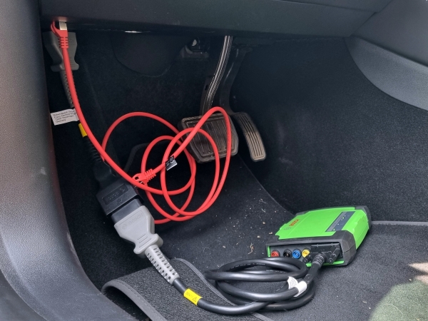 Aztán felcsillant a reménysugár, amikor a Bosch hírlevelében megláttuk, hogy a nagyjából bruttó egymilliós KTS560-hoz most már kínálnak egy 150.000 Ft-os kábelkészletet, amit alkalmazva a gyári szintű hozzáférést adja a program a Tesla modellekhez is. Már rohantam is az értékesítőhöz, hogy mi akkor lecsapnánk a lehetőségre. Meg is rendelték és kezdődhetett a teszt. Egy 2017-23 között gyártott Model 3-mal teszteltünk. Ott álltunk a diagos cég szakembereivel és összedugtuk és ráláttunk az egészre, az SOH értéket mégsem tudtuk kicsikarni a kocsiból. Szomorúan ballagtunk haza.