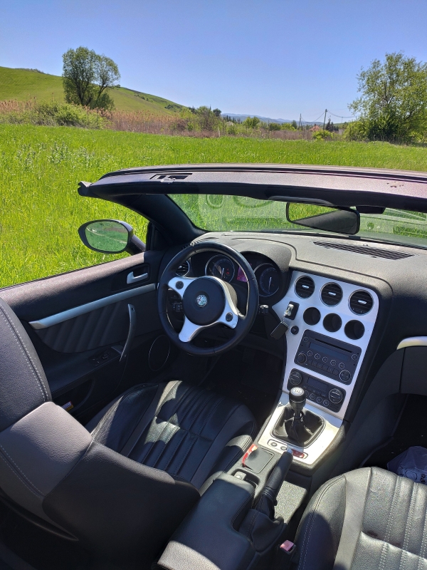 Nagyon tehetséges orgonistát ismertem meg az Alfában, gyönyörűen játszott a hangszeren, alul is szépen szól, de felül tényleg üvölt, én meg ugyanígy ujjongok, mert akit kicsit is megcsap a szele ennek az egésznek, amit menésnek hívunk egy autónál, az tudja jól, hogy a kipufogóból érkező hangok mennyire vegytisztán adják át a haladás örömét. Ebben a Spiderben egy utólagos kipufogórendszernek köszönhetően a négyhengeres 2200 köbcentis motor prüszköl, ordít, kiabál, morog, és búg. Mindaz csak a jobb lábunkon múlik, hogy melyik tételsort adja elő, de a nagykoncertes élmény garantált. Kár, az elektromos gázpedálért, kár a jól megszervózott, kicsit kelletlen kormányért, ezek vesznek ki az élményből, de kérem Fiat konszern, nem analóg autó ez, kell az elektronika, hol van már a nyolcvanas évek vége, és az Alfa 75.