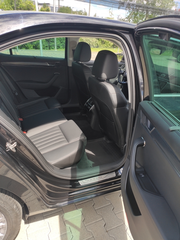 A Skoda sokak számára mindig is „aftermarket” Volkswagen marad, és mivel a tesztidőszakban egyszerre ültem nagyon sok felső kategóriás Volkswagenben, és Audiban, elmondhatom, hogy a különbség látható, hallható és tapintható. De valljuk be, sokan nem hasonlítgatni, hanem csak közlekedni akarnak, és örülnek, hogy a Passathoz képest több teret kapnak ugyanazért a pénzért. Illetve nagyon sok a lerúgott cégautó, vagy flottás üzemben futott darab, aminek sosem volt igazi gazdája, igaz lehet ez a Superbre is, viszont azonos áron még mindig kifoghatunk egy fiatalabb, kevesebbet futott, és esetleg jobban extrázott darabot. A tesztautóban is minden fontos extra szerepelt, amit korunk autóitól elvárunk, a kényelmes DSG váltón keresztül, az adaptív tempomatig, sávelhagyó rendszerig bezárólag mind-mind kényelmessé, és biztonságosabbá teszi az utazást. A kormány Volkswagenesen feszes, a DSG úgy dolgozik, hogy nem is tudok róla, jók a fékek, néha megfeledkezem róla, hogy ekkora autóban ülök. A parkolásnál elkel a segítség, így a radaros tolatókamera a legjobb barát a belvárosi szűk manővereknél. Az autó méretei miatt ezek nem a legkellemesebb élmények lesznek, de a kocsi közel öt méteres, és majdnem két méter széles, szóval nagy helyet kíván, ez a szűk mélygarázsoknál is okozhat nehézséget. A motorral a teszt végére sem tudtam megbarátkozni, mert igaz, hogy nagyon jól gyorsul 7 mp. alatt megvan a 0-100 km/h, és közben hangtalan, de a nyomaték mégsem olyan hátba verős, mint a dízelnél.