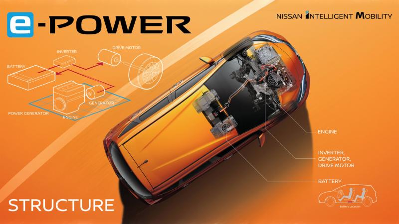 Bár a Nissan már 250 ezer elektromos Leafet gyártott, mégis a most bemutatott Note e-Power az első hatótávnövelővel (range extender) ellátott elektromos autója. Az alapvetően elektromos hajtáslánchoz – amelyben a Leaf villanymotorja dolgozik – egy kis lökettérfogatú benzinmotort kapcsoltak, így a tulajdonosnak nem kell tartania a lemerülő akkumulátortól. Hasonló rendszer dolgozik a BMW i3 REX-ben és az Opel Amperában is.
