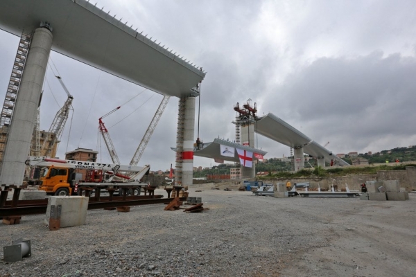 Az új hídszerkezet középső, negyvennégy méter hosszú betonelemének beillesztésével zárul le az építkezés: a roncshidat tavaly június végén robbantották fel, majd a romeltakarítás után elkezdődött az új híd építése, amely 620 nap alatt készült el. A Renzo Piano olasz sztárépítész tervei alapján készült híd majdnem egy kilométer hosszú, tizenkilenc pillér tartja, de elődjével ellentétben nem függőhídról van szó. Több mint 17 ezer tonna acél kellett a szerkezet megvalósításához, a hídépítésen szakaszonként 600-1000 munkás dolgozott, a koronavírus-járvány miatt a legszigorúbb biztonsági feltételekkel.