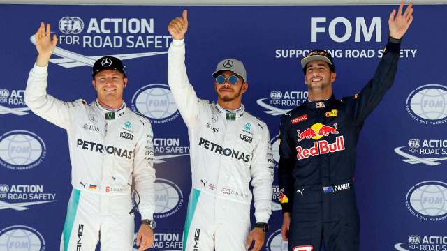 A vb-pontversenyek állása 18 futam után (még 3 van hátra): pilóták: 1. Rosberg 331 pont 2. Hamilton 305 3. Ricciardo 227 4. Vettel 177 5. Räikkönen 170 6. Verstappen 165 7. Pérez 84 8. Bottas 81 9. Hülkenberg 54 10. Alonso 52 11. Massa 49 12. Sainz Jr. 38 13. Grosjean 29 14. Kvjat 25 15. Button 21 16. Magnussen 7 17. Palmer 1 18. Wehrlein 1 19. Stoffel Vandoorne (belga, McLaren) 1. csapatok: 1. (és már világbajnok) Mercedes 636 pont 2. Red Bull 400 3. Ferrari 347 4. Force India 138 5. Williams 130 6. McLaren 74 7. Toro Rosso 55 8. Haas 29 9. Renault 8 10. Manor 1 pont.