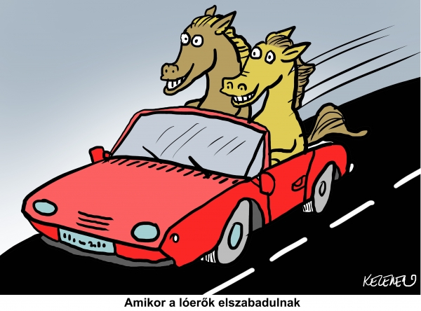 A heti rajzunk készítője Kelemen István. Rajzának címe: Amikor a lóerők elszabadulnak.