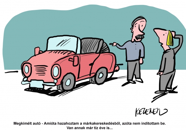 E heti rajzunk készítője Kelemen István, rajzának címe: Megkímélt autó.