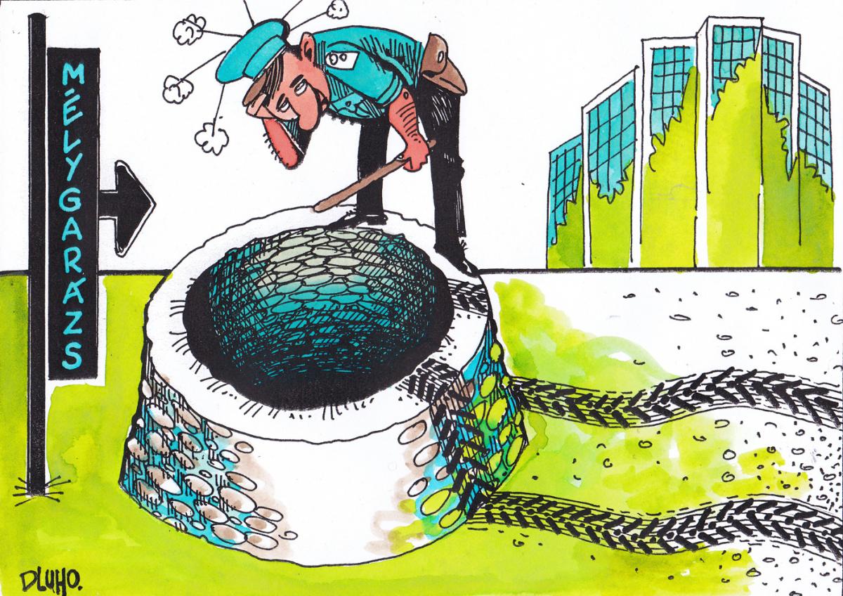 E heti karikatúránk készítője Dluhopolszky László, rajzának címe: Mélygarázs.