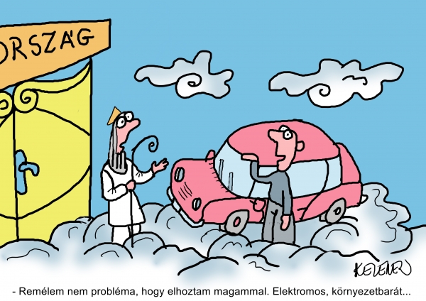 Heti rajzunk készítője Kelemen István, karikatúrájának címe: Mennyei autó.