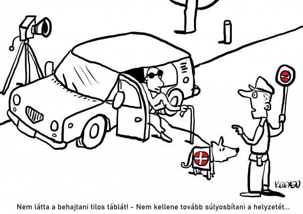 A heti rajzunk készítője Kelemen István. Rajzának címe: Nem látta a táblát?