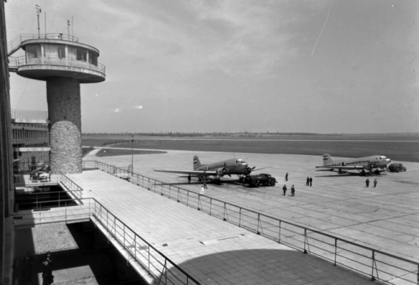 Malév Li-2 típusú repülőgépek a ferihegyi repülőtéren. Fotó: FORTEPAN