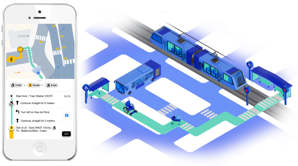 Ennek megvalósításához minden résztvevő szakértelmére maximális szükség van. Az Okeenea által fejlesztett Evelity okostelefonos alkalmazás a Vichyben található CREPS-központ részletes akadálymentes térképét tartalmazza, a kültéri útvonalakon kívül az épületeken belüli navigációs lehetőségeket is megjelenítve. A CREPS egy olyan integrált sport-, szakképzési és kompetencia-központ, amely a Franciaország más pontján működő tizenhat, hasonló létesítményhez hasonlóan a francia olimpikonok és paralimpikonok felkészüléséhez biztosít minden szükséges feltételt. Az Evelity által biztosított információk nem csak a sportolók, de a látogatók számára is lehetővé teszik a problémáktól és akadályoktól mentes eligazodást és közlekedést az 500 hektáros területen belül.