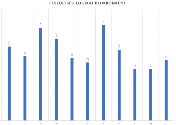 Hivatalosan és névlegesen a 22 blokkba rendezett 132 db cella összfeszültsége 158,4 Volt. A Civic 11 db feszültségmérő csatornával rendelkezik, 1 csatorna 2 fizikai blokkot mér. A diagnosztikában így 11 logikai blokk feszültségértékeit láttuk a következő értékekkel.