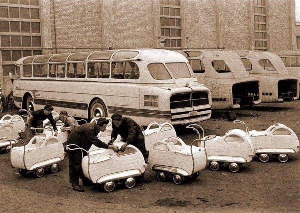 Így került a csizma az az asztalra, azaz a babakocsi termelés az IKARUS autóbusz gyárba. 1952-től a hatvanas évek elejéig 23 ezer babakocsi készült. A csöppséget redőnyös tolótető védte. A kocsit szteppelt műanyag burkolta, a kerekeket króm sárhányó védte. 1.200 Forintos áron került a boltokba és 15-20 napot kellett dolgozni, hogy valaki megvegye álmai babakocsiját. 5 ezer sport változatot is gyártottak. Az ügyes kezű barkácsoló a hármas ikreknek IKARUS babakocsit fabrikált. Egy-egy kocsi több generációt, családot is kiszolgált, mert a feleslegessé vált holmik abban időben nem a kukában landoltak.
