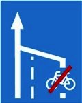 Ez pedig a nyitott kerékpársáv vége tábla (ami szintén ismerős lehet a normál kerékpársávok miatt, de persze ezúttal is fehér szaggatott vonal az elválasztó.)