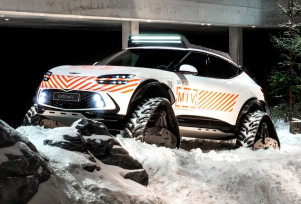 Speciálisan mentési célokra és különleges alkalomra kreálta legújabb hójáróját a Hyundai prémiummárkája, a Genesis. A GV60 Mountain Intervention Vehicle (MIV) lánctalpas mentőjármű a széria gyártású elektromos GV60 alapjaira épült. A mentési feladatokra tervezett V2L lánctalpast a Világgazdasági Fórumon mutatták be Davosban, ahol a Genesis már harmadik éve megjelenik egyedi tanulmánymodellel. 2023-ban az X Concept , 2024-ben az X Snow Speedium Concept, idén a GV60 MIV parkolt a svájci síparadicsom legdrágább szállodája előtt.