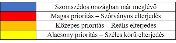 A pihenőhelyek a kapott pontszámoknak megfelelően kategorizálva lettek egy feltételezett magyarországi elterjedési forgatókönyv szerint. A legmagasabb pontszámmal rendelkező pihenőhelyek prioritás szempontjából a legfontosabbak, az elterjedési forgatókönyv szerint a töltőállomások még csak szórványosan jelennek meg. A narancssárga színnel jelölt pihenőhelyek prioritás szempontjából közepes fontosságúnak számítanak, így reális elterjedési forgatókönyvnek felelnek meg. A prioritás szempontjából kevésbé fontos pihenőhelyek citromsárga színűek, ugyanakkor az elterjedési forgatókönyv a pihenőhelyek magasabb darabszáma miatt már széles körű elterjedtséget mutat.