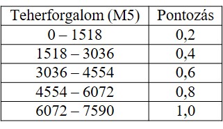 5. táblázat: Pihenőhelyek teherforgalmi adatainak pontozása