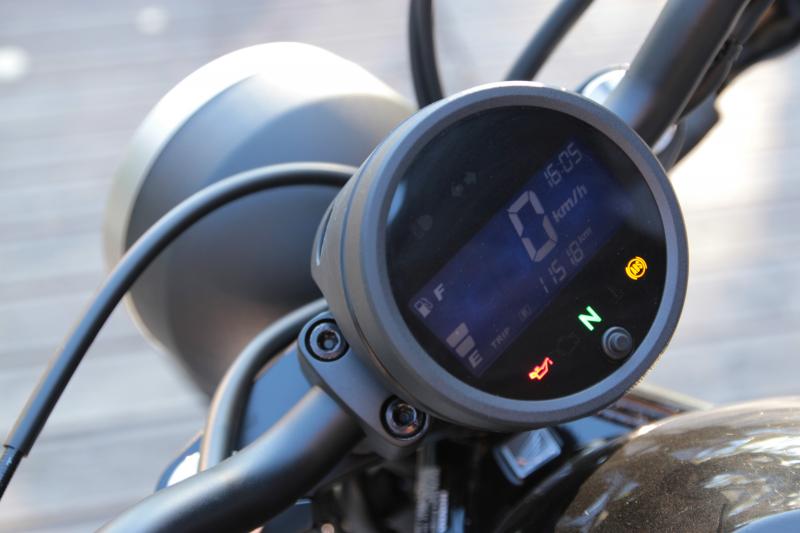 Kerek házban ultramodern, LCD-s műszeregység, a fordulatszámot saccolni kell.